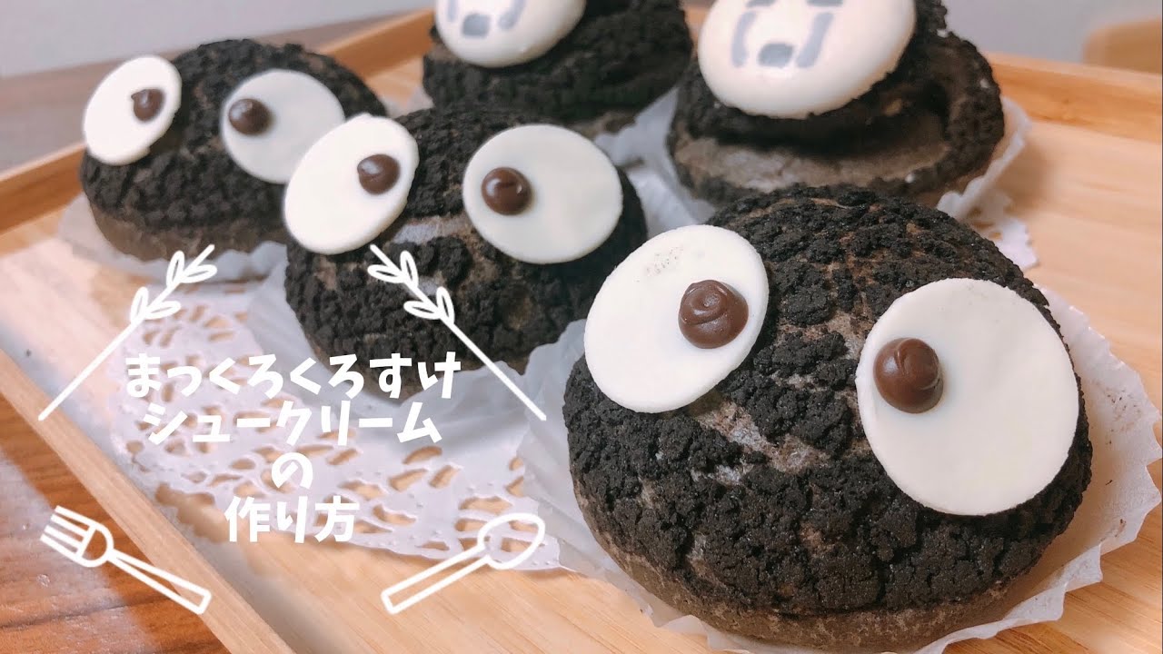 ハロウィン まっくろくろすけのクッキーシュークリームの作り方。