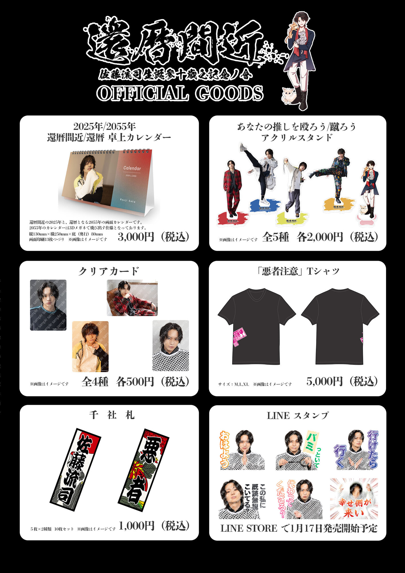佐藤流司バースデーイベント『還暦間近 佐藤流司生誕参十歳之記念ノ會』販売グッズラインナップ公開!佐藤流司OFFICIAL SITE。