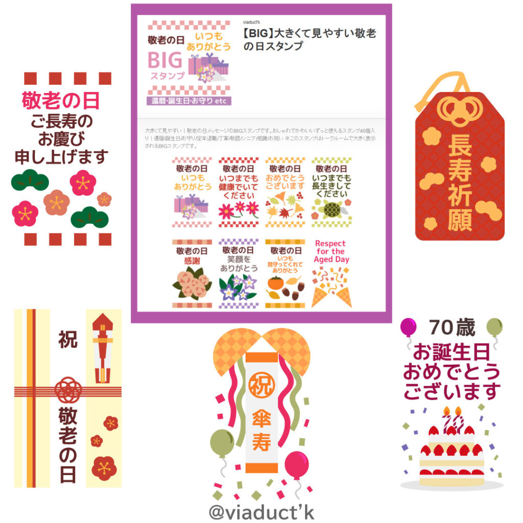 LINEスタンプお試し!「敬老の日・長寿のお祝い BIG 」 - スタンプためす。
