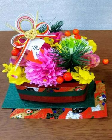桃の花飾り」でラッピング!画用紙で簡単に作れるひな祭りアレンジはんどカフェ。