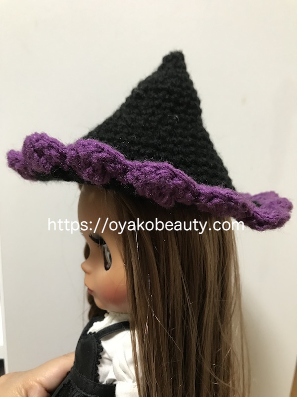 ハロウィンの衣装作り「ブライスちゃんに魔女帽子を編んでます」私の毎日の楽しみ方。