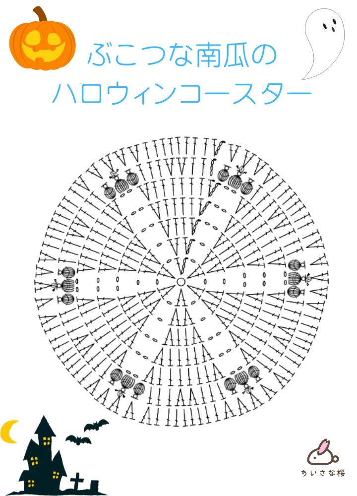 かぎ針編み ハロウィンに☆かぼちゃのコースターの編み方 編み図で解説ちいさな桜.com。