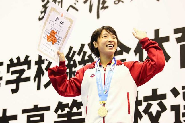 飛込日本選手権 続いて女子高飛込 ! こちらは新星誕生を予感させる試合となりました。戦いは最終演技までもつれます。優勝したのは、オリンピック日本代表荒井祭里JSS宝塚 。本調子ではなかったものの、大きなミスはなく、最後の演技で高得点をだし逆転優勝。