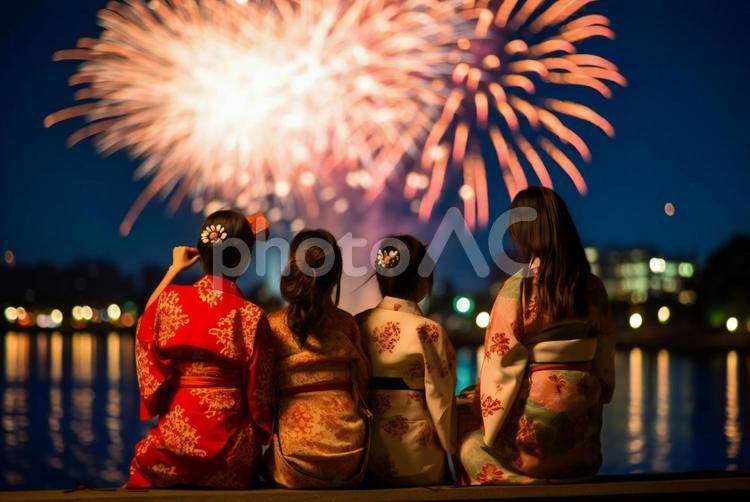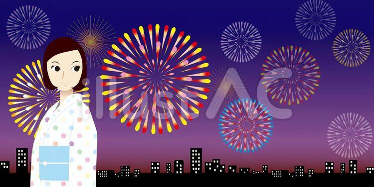 花火を見物する浴衣姿の若い女性 AI生成のイラスト素材127421719- PIXTA。
