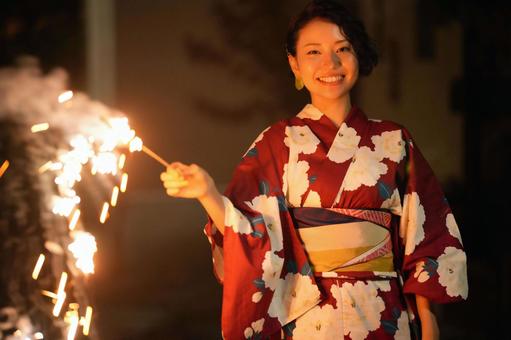 フリー素材 花火「浴衣」 Season Stock Iroha。