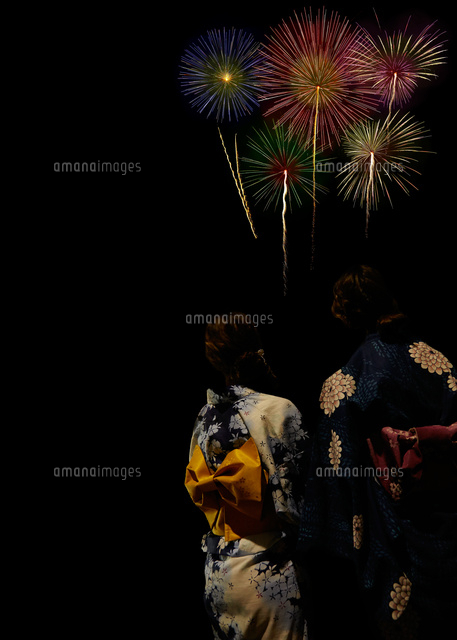 花火を見る浴衣姿の女性 02022346256 の写真・イラスト素材アマナイメージズ。