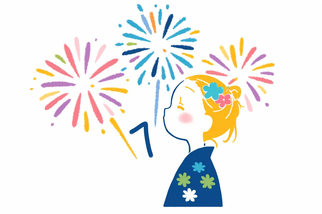 夏祭り・花火大会のフリーイラスト素材。和の夏!ころえもんカフェ。
