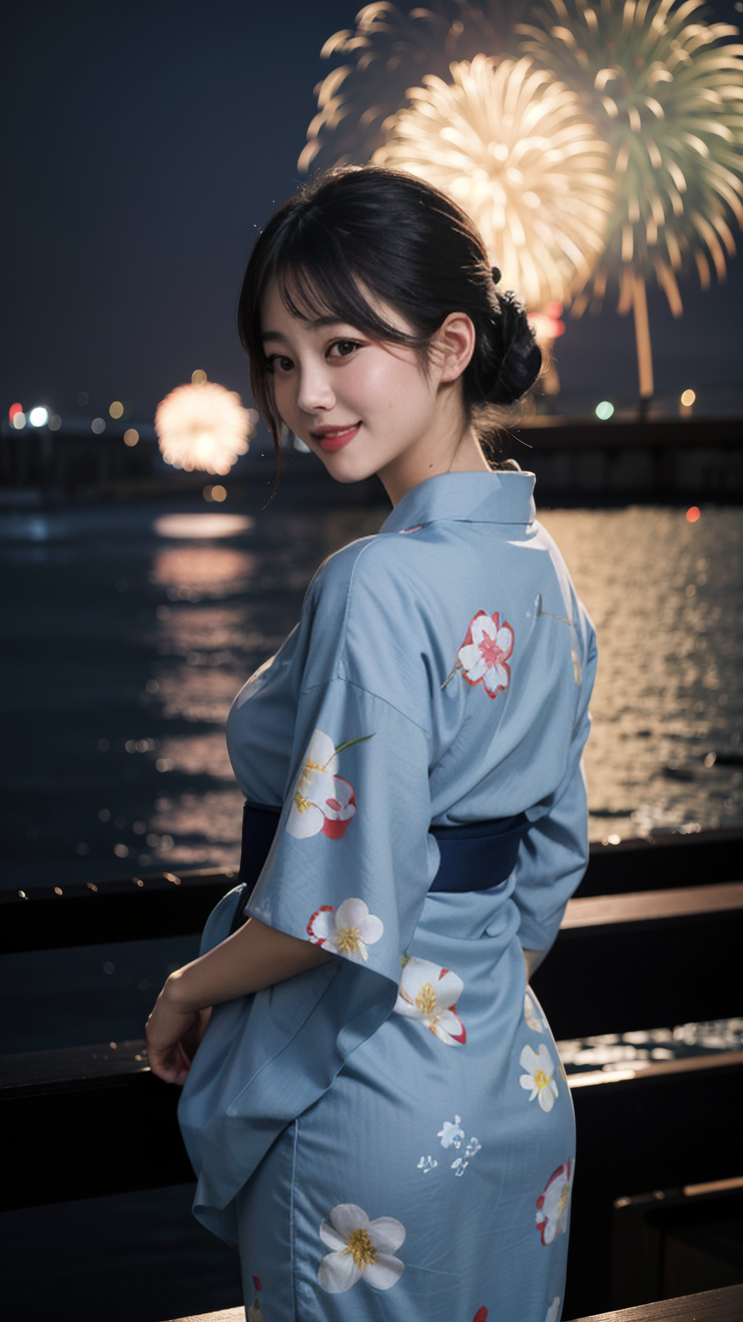 浴衣姿で花火に見に来た女性 3810534325- AI美女フリー素材 AIPIX。