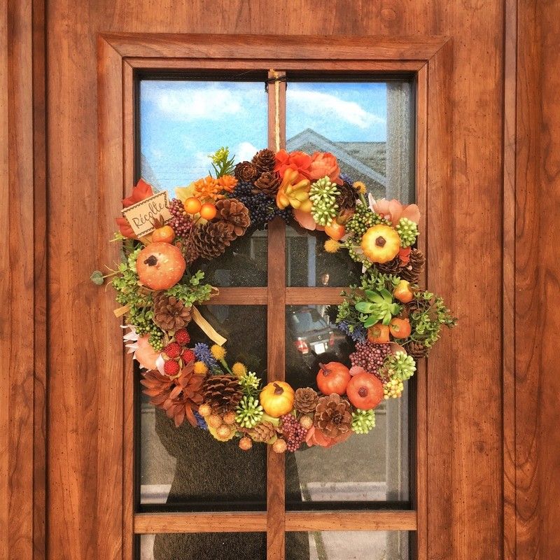 秋の収穫祭 秋リース*ハロウィンリース*実りいっぱいリース 秋のリース作りました〜🍂 いつもの如く、100均の材料だけです。 実家と友人の元へ👋早速、玄関に飾った👍と 嬉しい写真🫶🏼 後は、娘のリクエストは改めまして〜👐リース秋autumハロウィン。
