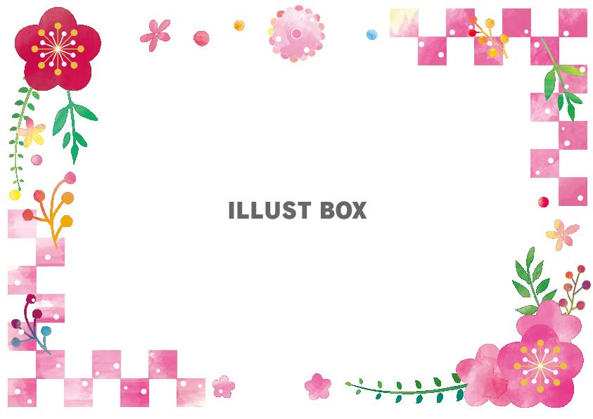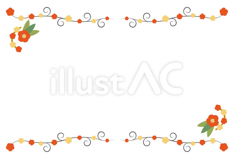 梅・新春・お正月のフレーム枠イラスト素材イラスト無料・かわいいテンプレート。