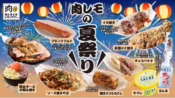 夏だ!祭りだ!肉レモだ! TikTokで大バズリ中の食べ放題&飲み放題専門店『肉ときどきレモンサワー。』にて、屋台グルメでお祭り気分を楽しむ、”夏祭りフェア”開催!2024年5月28日- エキサイトニュース。