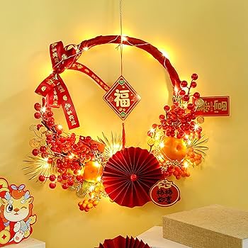 Amazon.co.jp: リース お正月リース お正月飾り 花輪 正月飾り 玄関リース 春節 飾り 旧正月 春祭り 辰年 迎春 新春 2024縁起物 装飾 豊作祈願 平安 幸運 繁栄祈願 雰囲気 飾り付け 中国伝統 中華風 新年を迎える 旧正月ガーランド LEDライト付き 吊り下げ飾り。