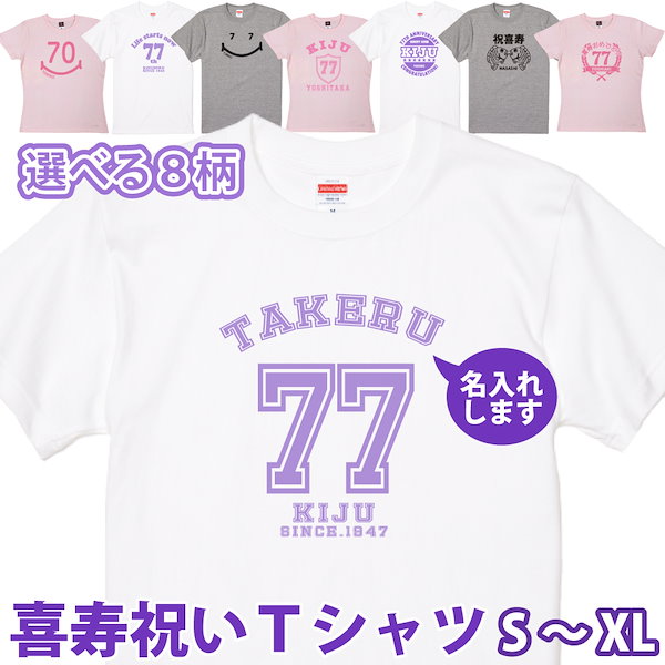 喜寿 祝い 喜寿のお祝い 品 女性 男性 プレゼント 名入れ おしゃれ Tシャツ 言葉 贈り物。