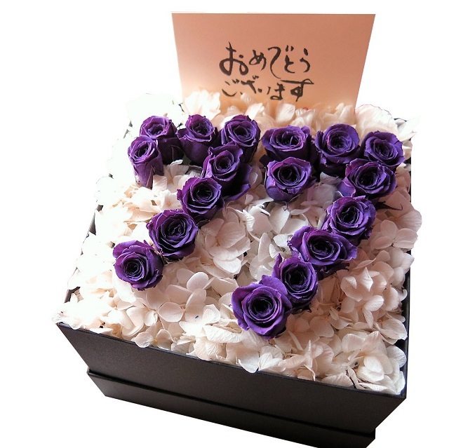 喜寿お祝い 77歳 数字77入り 紫バラ フラワーギフト プリザーブドフラワー ケース付き プリザーブドフラワー ◇喜寿お祝いプレゼント・記念日の贈り物におすすめのフラワーギフト-フラワーガーデン リーブス - プレゼント&ギフトのギフトモール。
