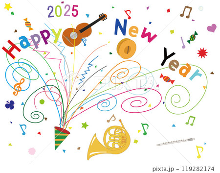 2025年の新年の挨拶のイラスト素材です。パーティーで新年を祝っています。のイラスト素材119282174- PIXTA。