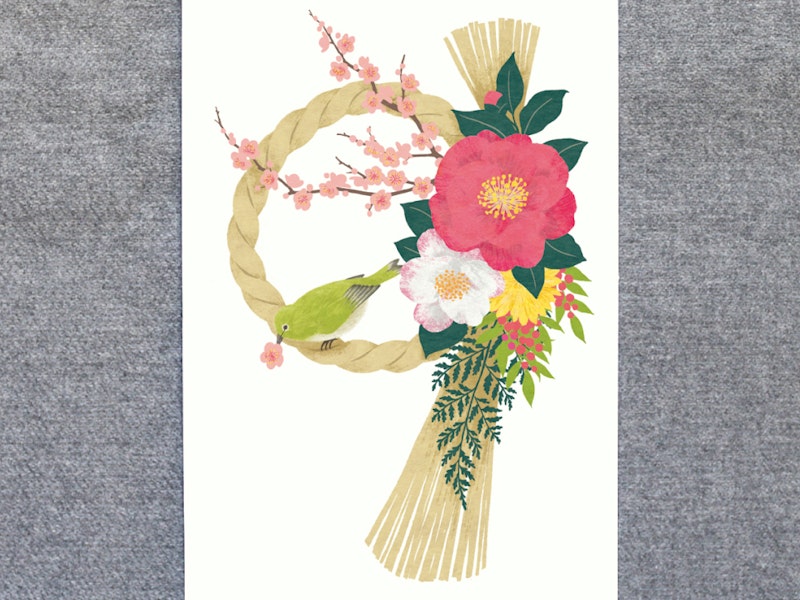 年賀状 2025 令和7年 巳 正月飾り イラスト素材7523864- フォトライブラリ。
