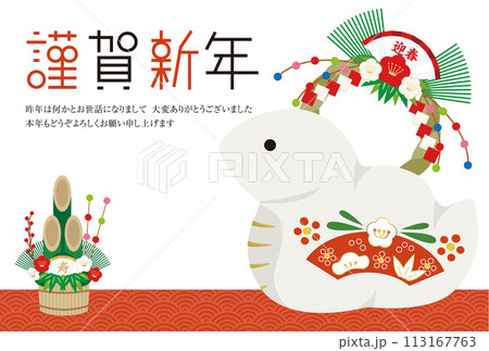 謹賀新年 挨拶2025年賀状 蛇の置物と門松と注連縄のイラスト素材113167763- PIXTA。