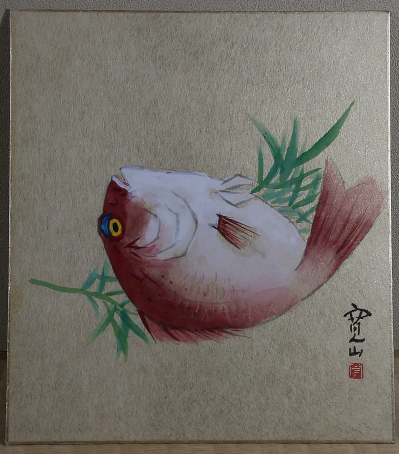 目出度い絵F6号J.YAMADAのサインがあります 目出度い絵F6号J.YAMADA。
