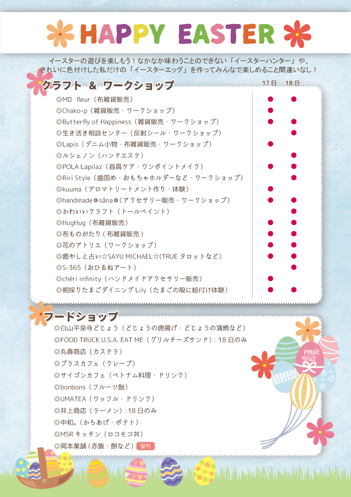 イースターイベントを開催しました! 鴨部店&緑ヶ丘店– 株式会社サンプラザ ホームページ。