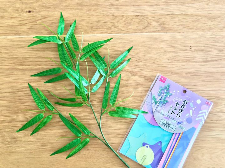 ダイソーの笹葉で七夕飾りを楽しもう。