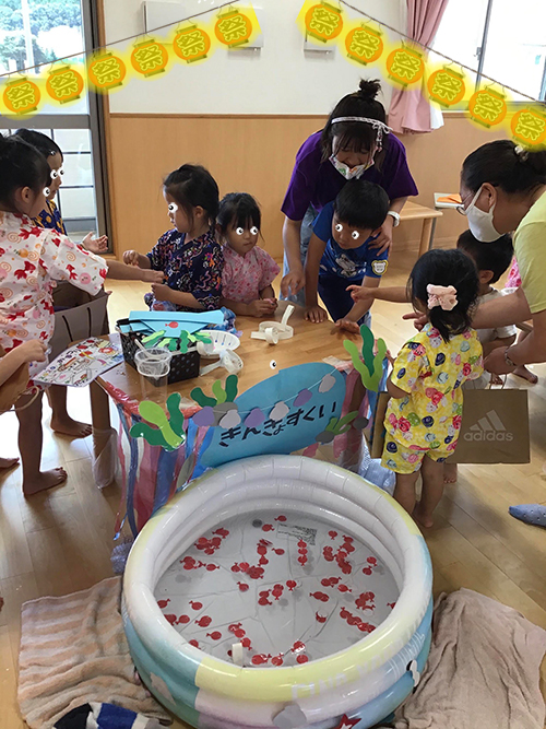 夏祭りごっこ 企業主導型保育園まるめろっじ社会福祉法人永寿会。