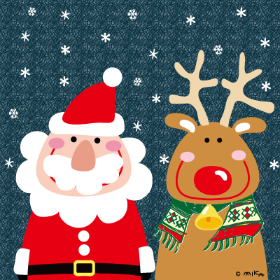 クリスマスに参上、サンタとトナカイの無料イラスト1商用可のイラスト素材集 – フリー素材BEZYBOX。