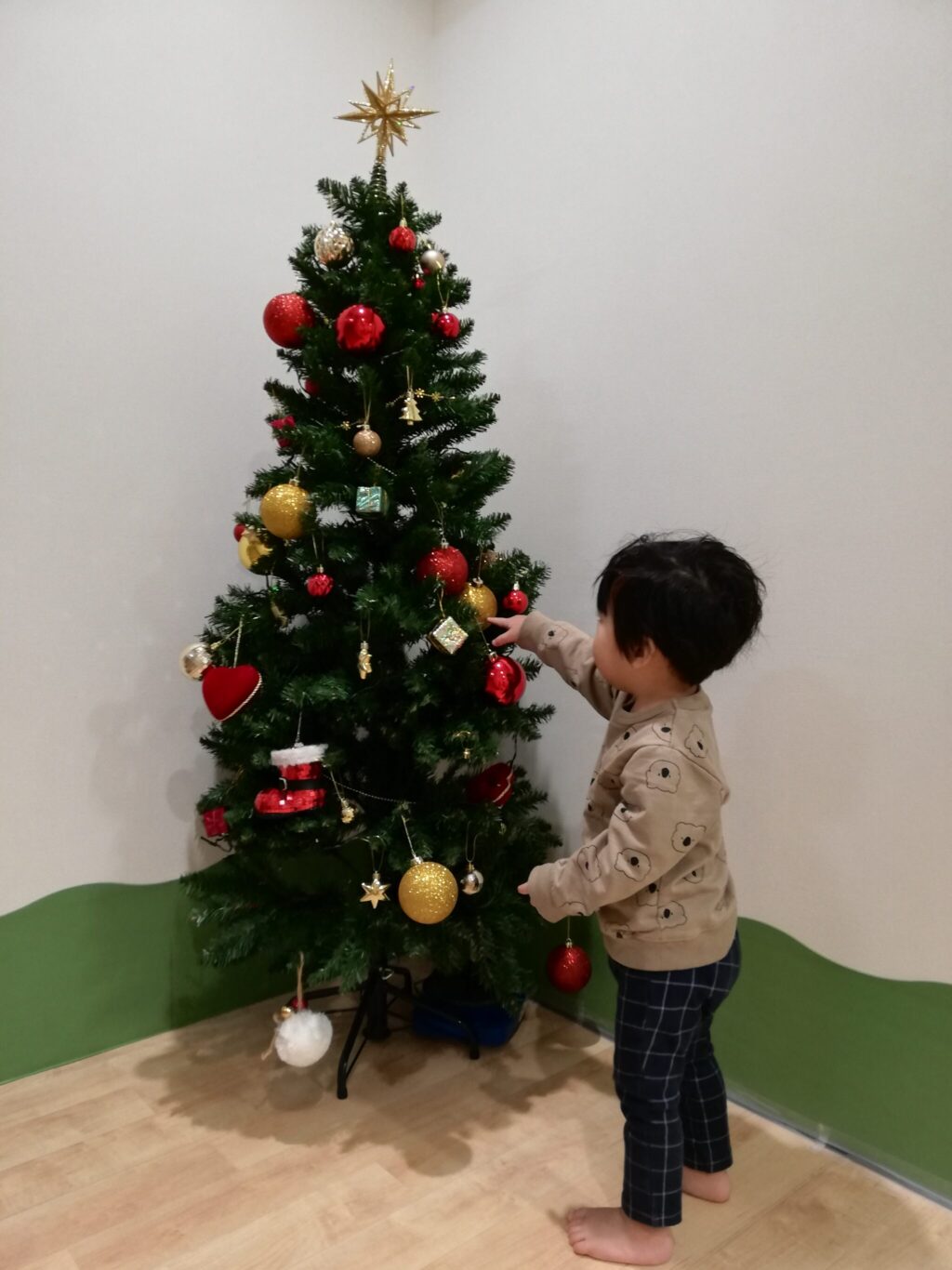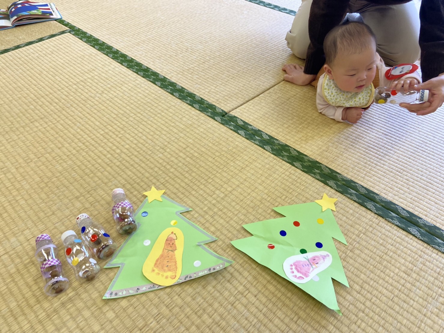 クリスマスツリー作り家庭的保育室「すてっぷ」。