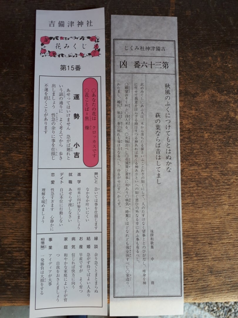 朝日奈 伶 on X: "吉備津神社には「よろこびみくじ」という女性の性に関するおみくじがあるのですが、何故か私の場合は相場について触れられていますhttps:t.co uuERN6ZPWu"X。