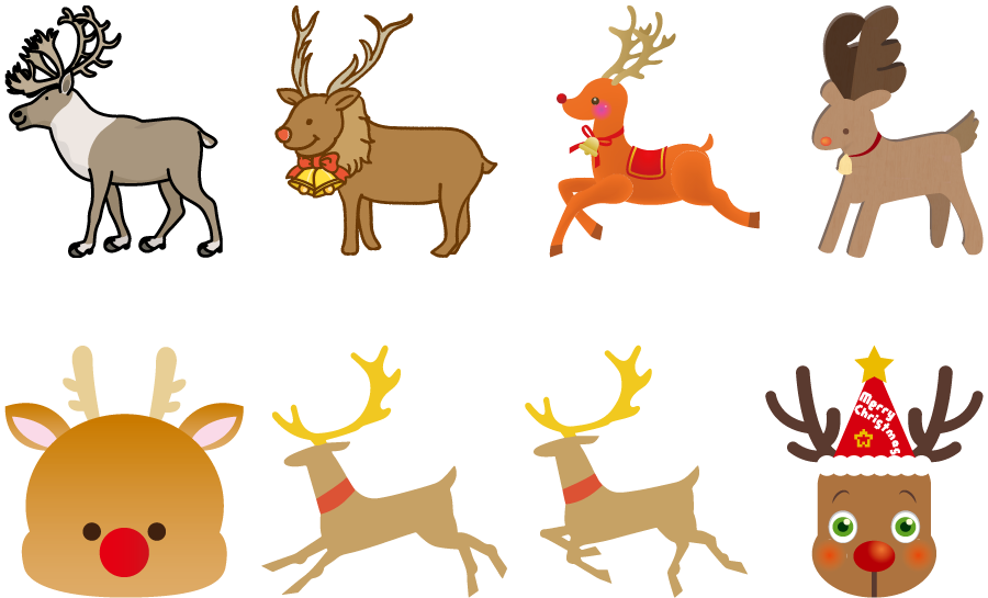 フリーイラスト8種類のトナカイのセットでアハ体験GAHAG著作権フリー写真・イラスト素材集 - GAHAG著作権フリー写真・ イラスト素材集。
