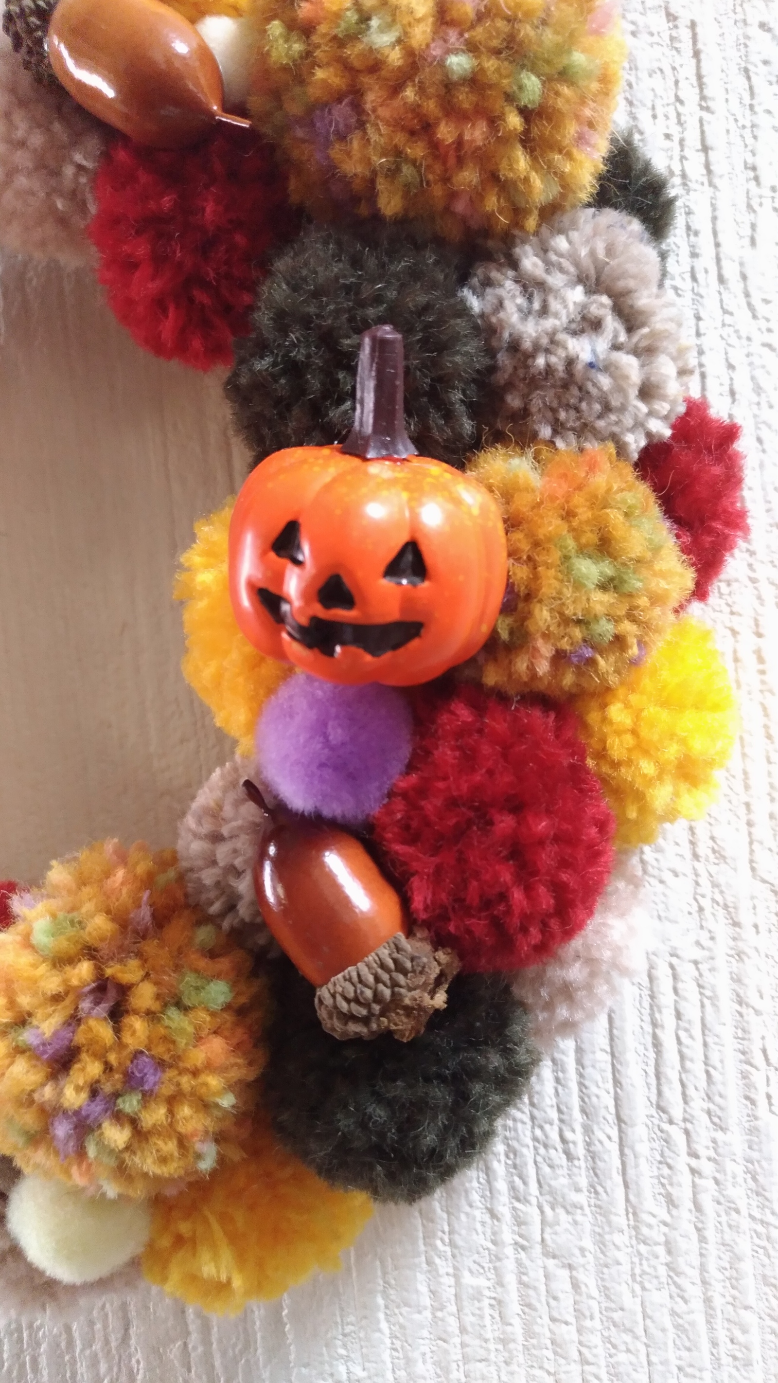 ハロウィンリース を可愛く手作り!毛糸でポンポンリースの作り方!子育てShineー輝くママと子供のためにー。