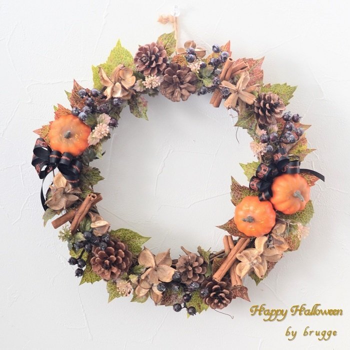 大人シックなハロウィンリース ハロウィン リース 完成品 造花 かぼちゃ ブラウン -アトリエブルージュ・flower shop -プレゼント&ギフトのギフトモール。