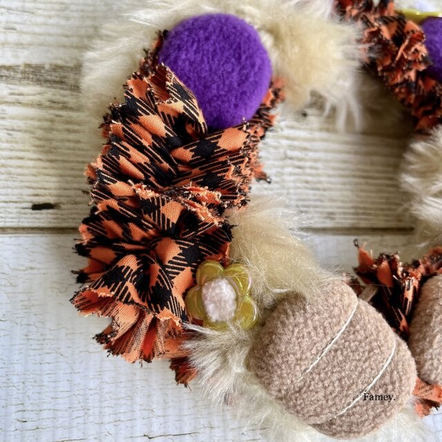 SALE!大人かわいい異素材ミックスハロウィンリース エコファー コットン フリース ハロウィンiichi日々の暮らしを心地よくするハンドメイドやアンティークのマーケットプレイス。