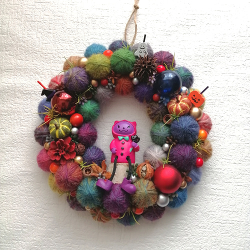 Sale〜カラフルでほっこり☆毛糸玉のハロウィンリース ハロウィン 毛糸玉リース ニットリース ねこ ネコ 猫 リース Allium blueperfume 通販 16518418Creema クリーマ。
