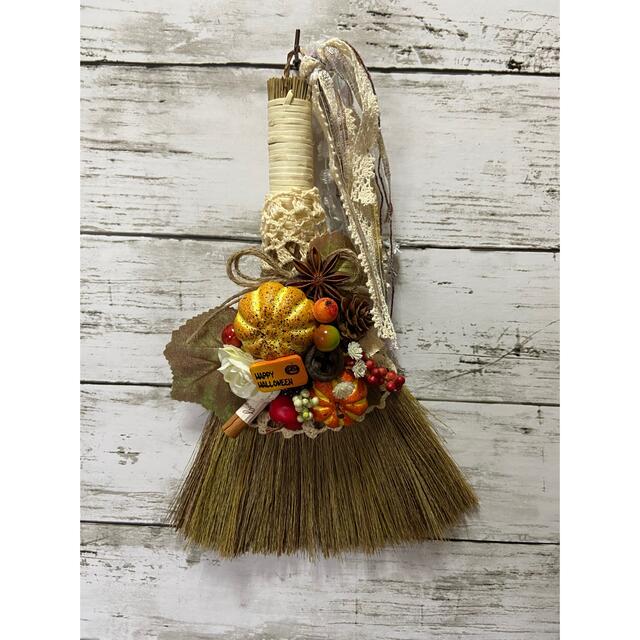 特集掲載 ハロウィン ハロウィンリースハロウィーン オレンジカラー🧡 木のみ×ほうき×ブラウンリボン。