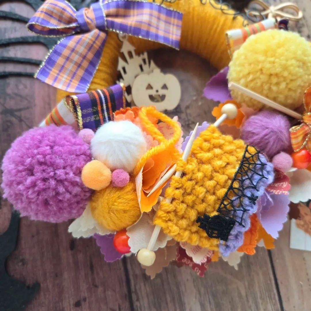 ポンポンで作るハロウィンリースみんなでつくるハンドメイド情報サイトホビースタイルHobbyStyle ホビスタホビー協会。
