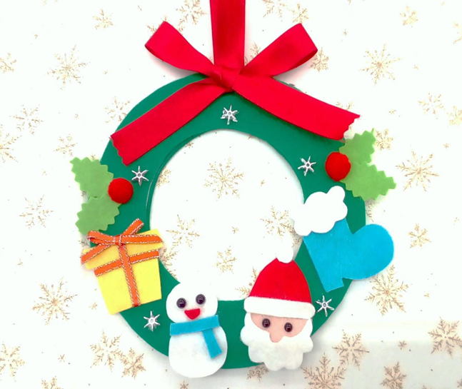 手作りフェルトクリスマスリースキッズアトリエのアートパーティ。