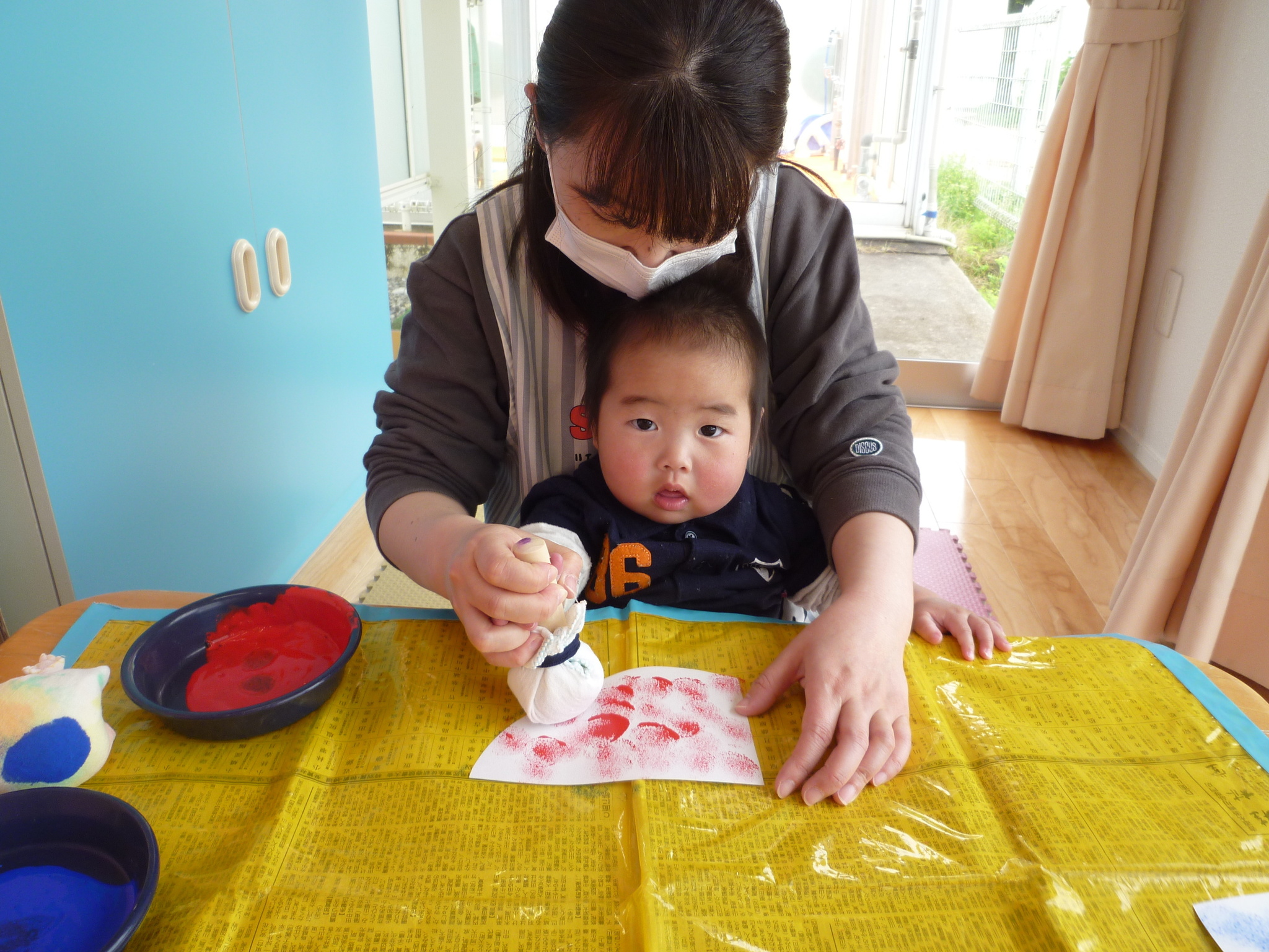 おひさまⅠ組0歳児 鯉のぼり製作。