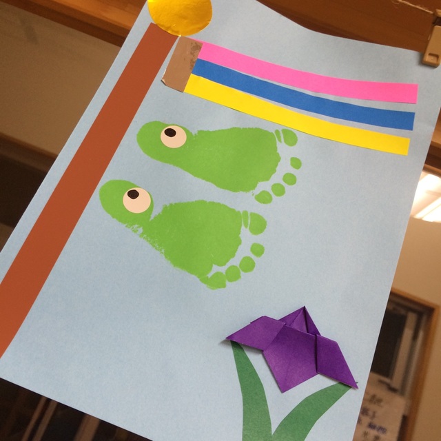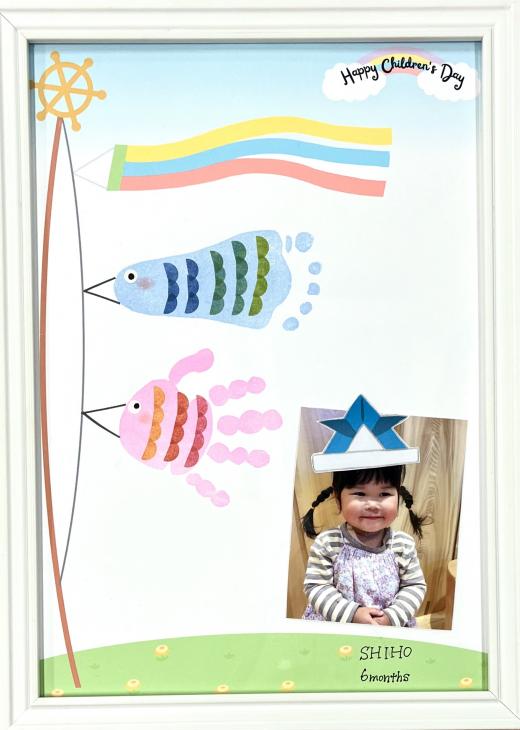魚だね〜!と、楽しめる『こいのぼり』の手形足形アート制作♪埼玉県草加市 獨協大学前しょうちゃんちのベビーサイン のぞいて!知って!赤ちゃんの世界♪。