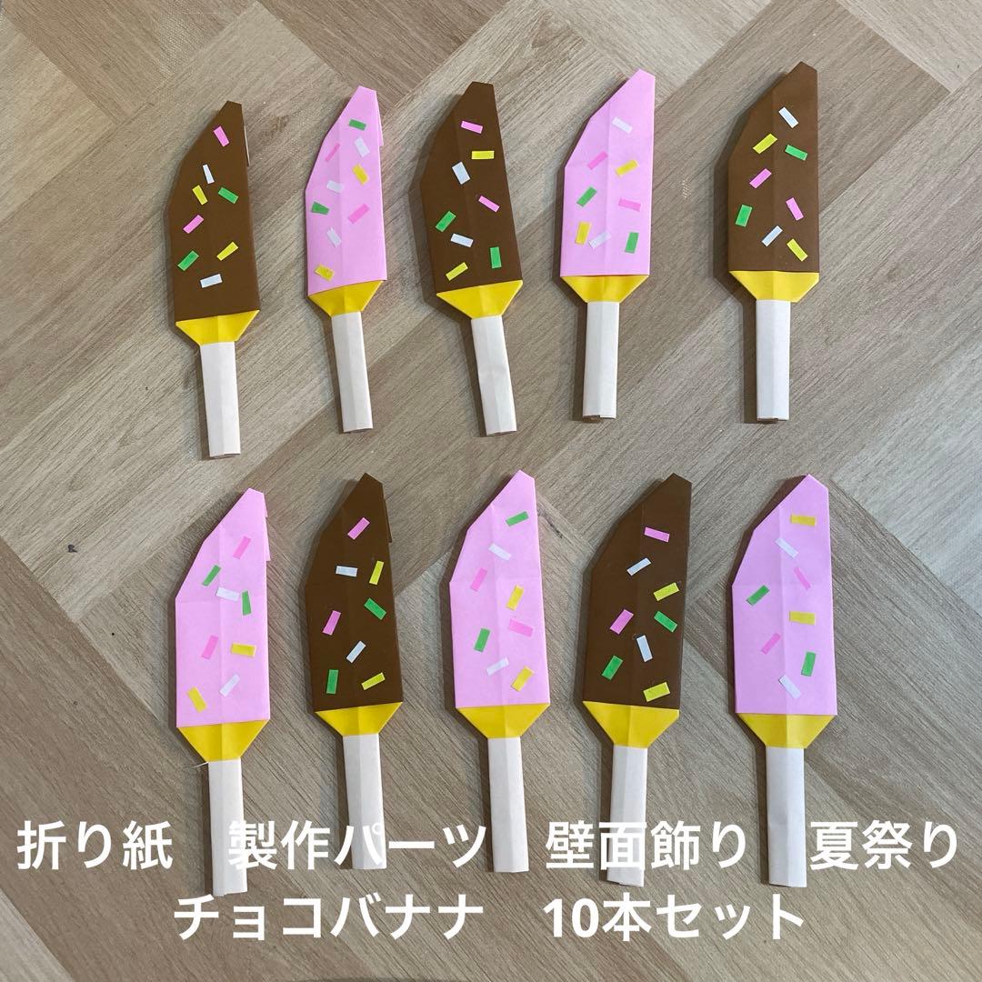ハンドメイド折り紙製作パーツ壁面飾り夏夏祭りチョコバナナ10本セット。