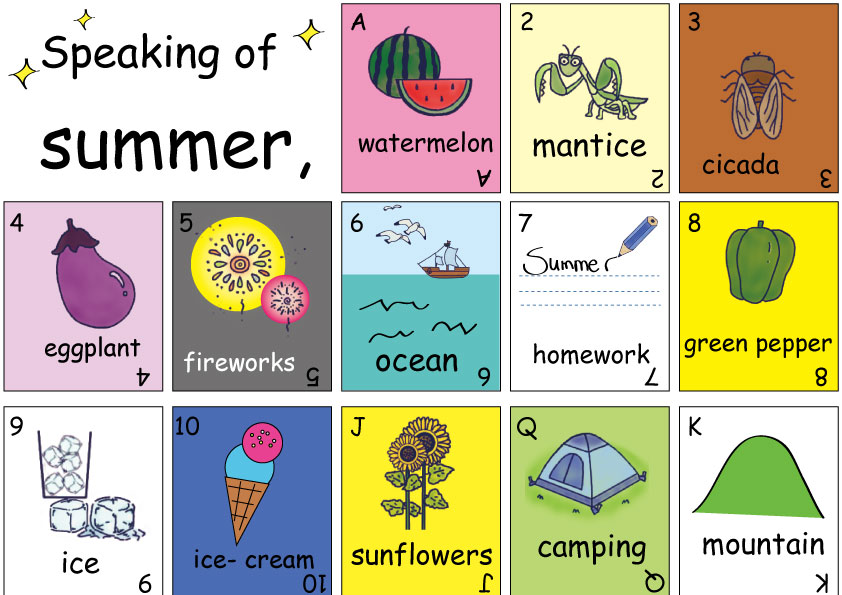 ゲーム BINGO 夏と言えばiris english learning resources。