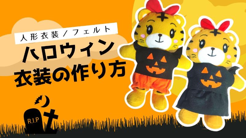 フェルトで簡単!手縫いとボンドでハロウィン衣装 10センチ、フクヤぬいサイズ。