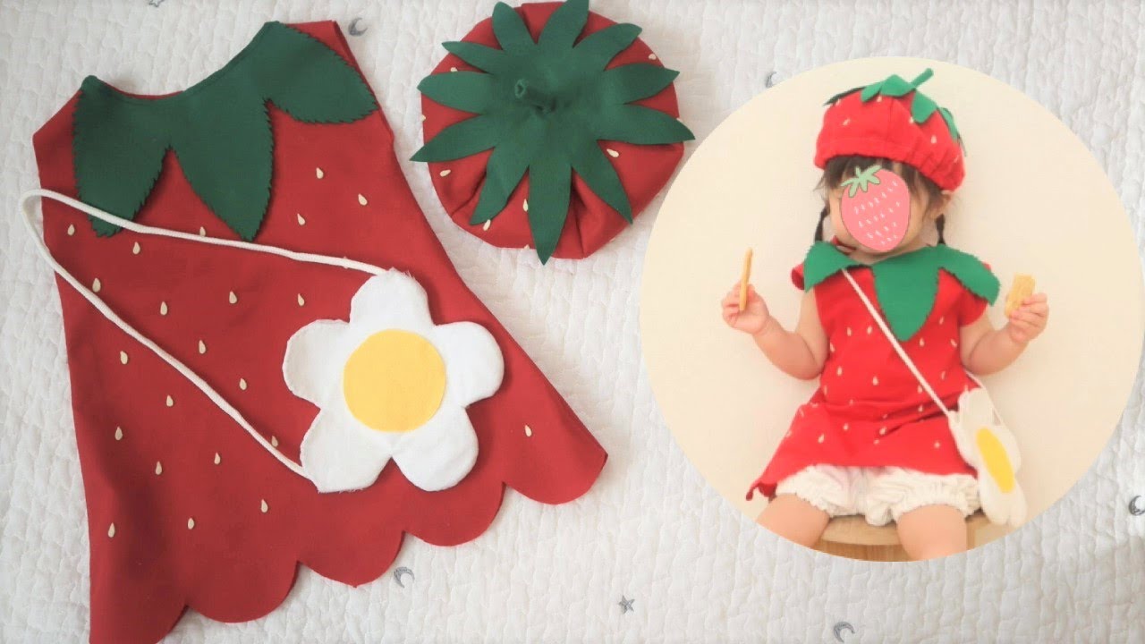 100均 子ども用衣装の作り方 Vol.9 いちごコスプレ🍓 │ イチゴ狩りやハロウィンに。