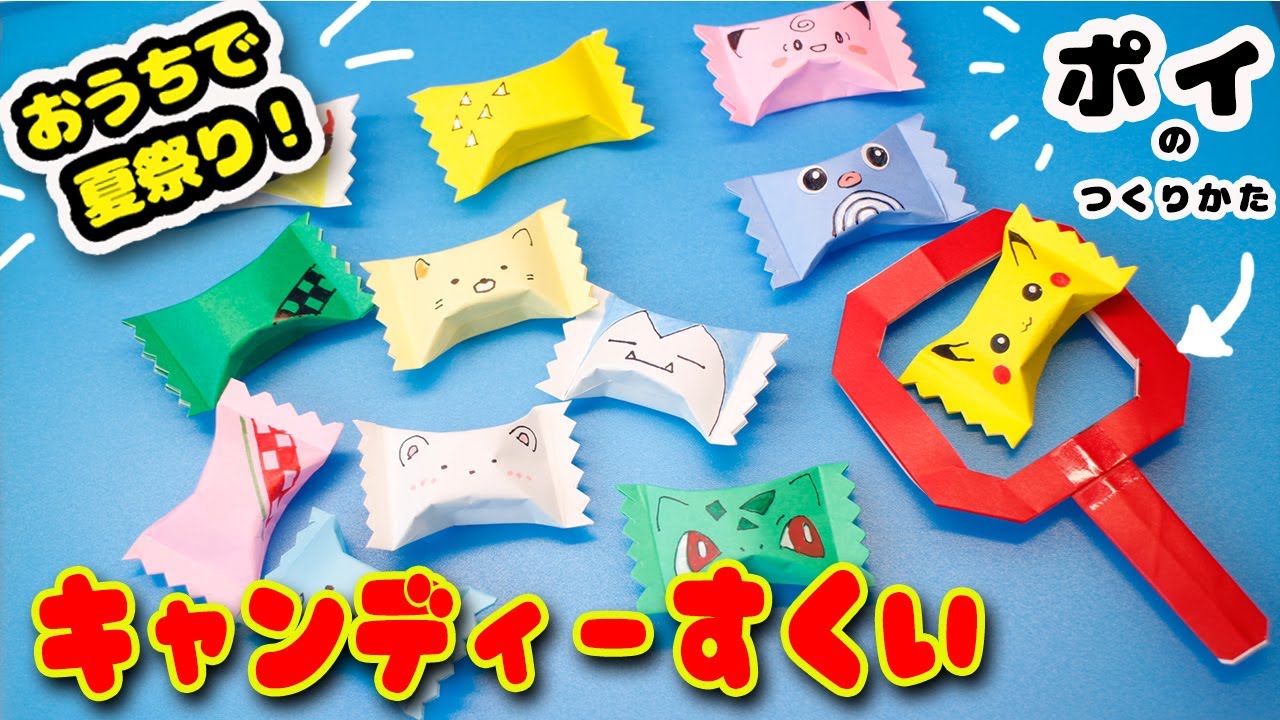 折り紙 おうちで夏祭り!「キャンディーすくい・ポイの作り方」。
