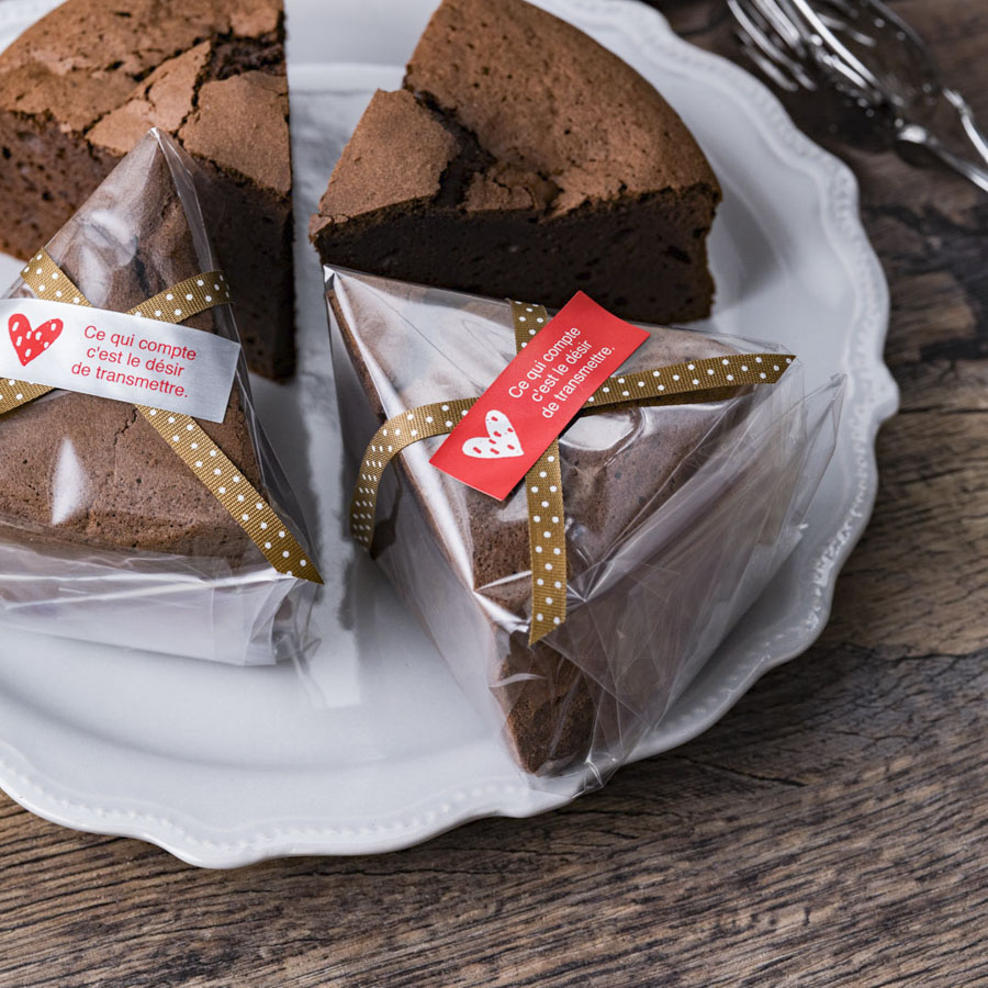カットガトーショコラのバレンタインラッピングラッピング富澤商店。