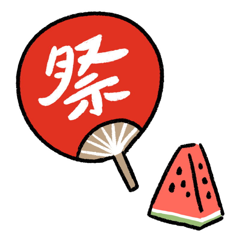 夏祭りのうちわとスイカのイラスト - ONWAイラスト。