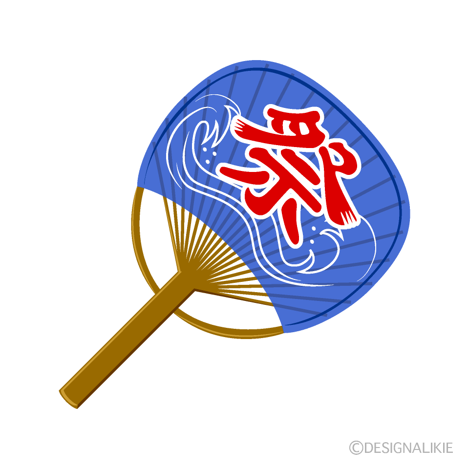 お祭りの、青色のうちわの無料イラストイラストセンタ。