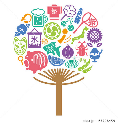うちわ型の日本の夏アイコンのイラスト素材65728459- PIXTA。