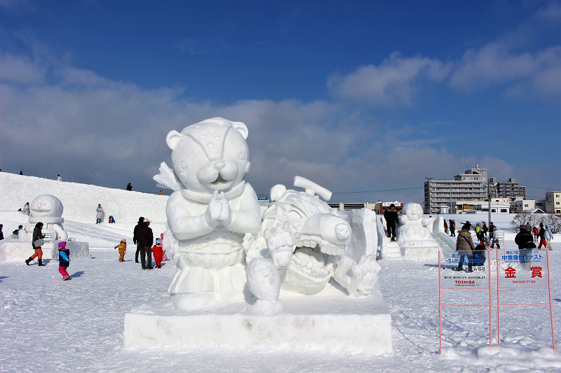 旭川市 旭川冬まつり昼日中の見どころ紹介。滑り台やドラクエキャラ登場の大雪像、スライムまんは要注目 みゃあ- エキスパート - Yahoo!ニュース。