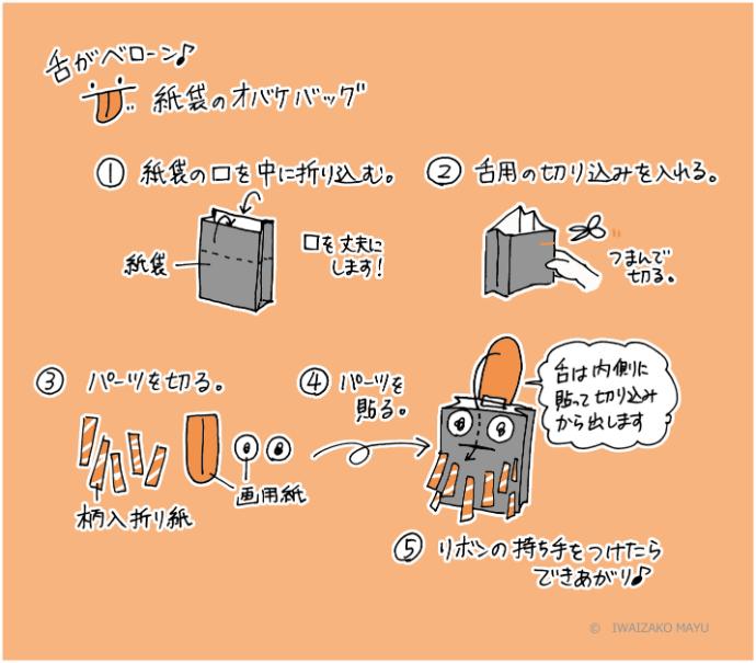 工作 舌がベロン♪ハロウィーンにどうぞ! 紙袋のオバケバッグ保育士を応援する情報サイト 保育と暮らしをすこやかに ほいくらし。