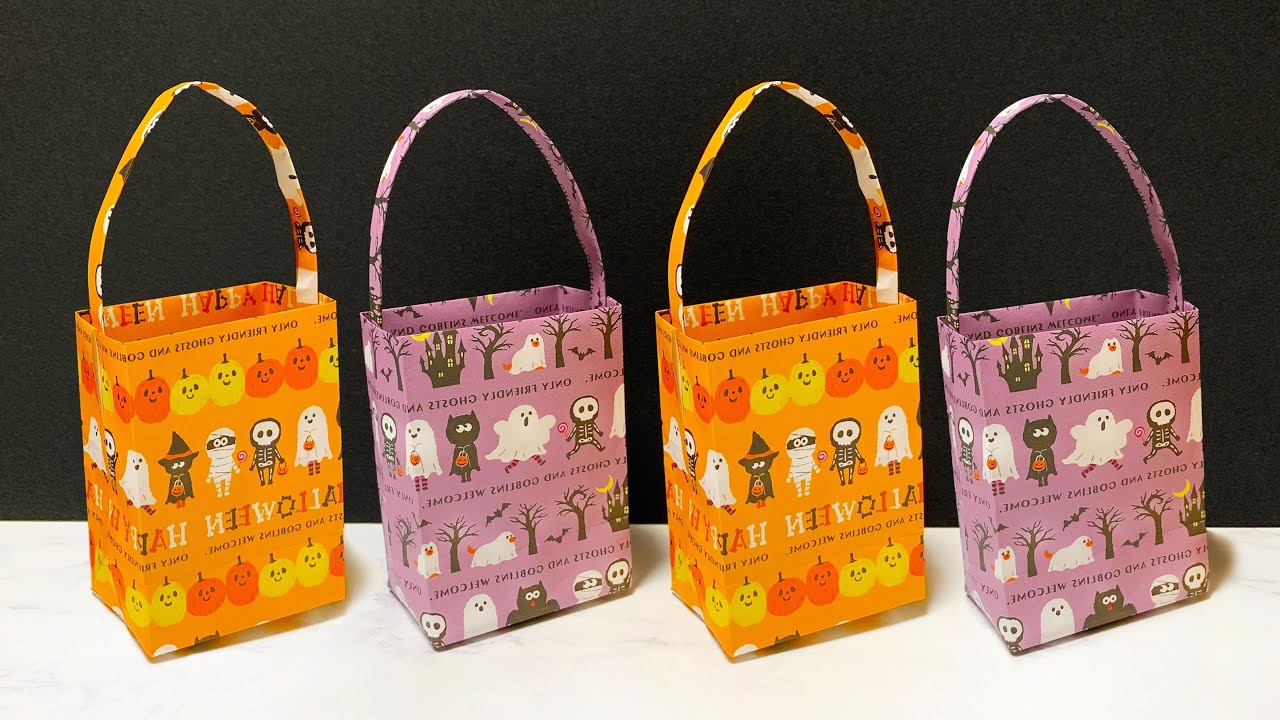 簡単折り紙 手提げ紙袋How to make Paperbag ハロウィン Halloween 할로윈 バッグ 袋 bag थैला tas 包 ถุง 가방 折り方 おりがみ origami。